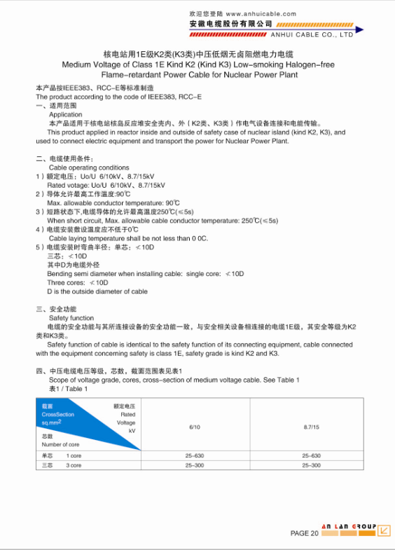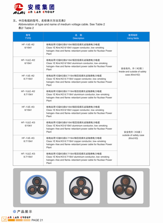 您所在的位置:首頁 > 產品中心 > 核電站用1E級K2類(K3類)中壓低煙無鹵阻燃電力電纜